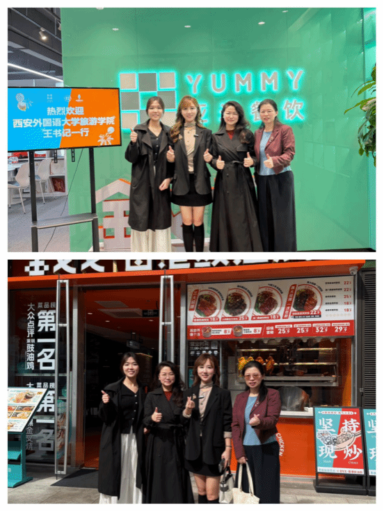11 月 27 日,在结束广州行程后,专程赴深圳推进专项工作,首站抵达优秀院友姚旻汐创立的深圳亚米餐饮管理有限公司。公司人力资源部负责人郭淮详细介绍了企业发展概况、员工学习晋升路径及薪资福利体系,特别强调了企业对青年管理人才的培养投入。王丹向企业全面介绍了学院学科专业特色、人才培养成果及毕业生就业优势。双方就人才输送等事项深入沟通,达成初步合作共识,团队还实地考察了企业一线门店运营情况,直观了解餐饮行业实操场景与人才需求标准。