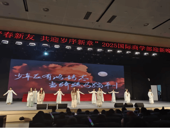 本次迎新晚会充分展现了国际商学部学子兼容并蓄、创新求索的蓬勃朝气。展望未来,国际商学部将继续秉持国际化、复合型人才的培养理念,以“五育并举”为纲领,依托丰富的第二课堂与实践平台,打造一系列兼具全球视野与商科特色的校园文化活动。我们致力于营造开放、互动、创新的成长环境,助力学子们拓宽国际视野,锤炼商业智慧,涵养人文精神。愿全体2025级新生以此为新起点,在国际商学部的广阔舞台上,博观约取,知行合一,成长为面向未来的卓越人才,为新时代发展贡献青春力量。